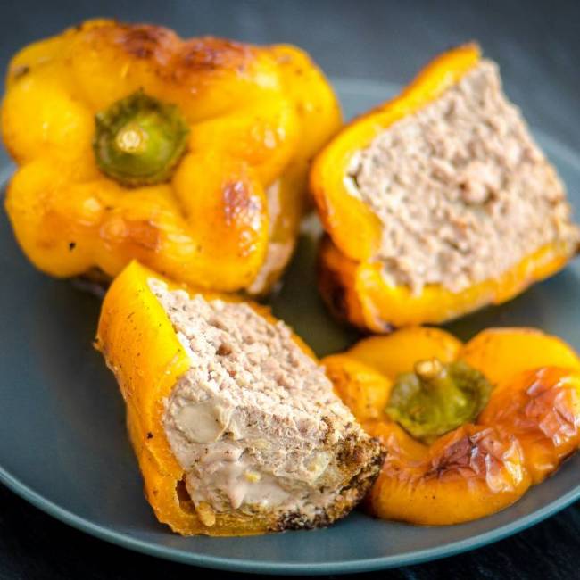 Fill the bell peppers with the mix. Grease an oven safe form with some olive oil, put the stuffed peppers in it and bake them for about 30mins.